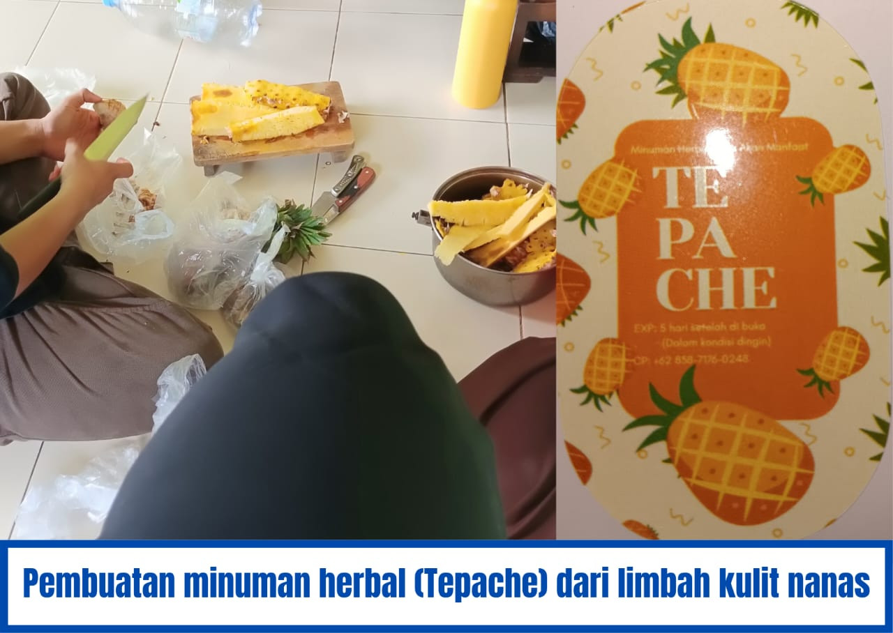 Pembuatan minuman herbal (tepache) dari fermentasi kulit nanas dilakukan oleh Mahasiswa KKN Suka Asih sebagai upaya inovatif dalam memanfaatkan limbah organik, sekaligus memperkenalkan olahan sehat yang bernilai ekonomis serta ramah lingkungan.