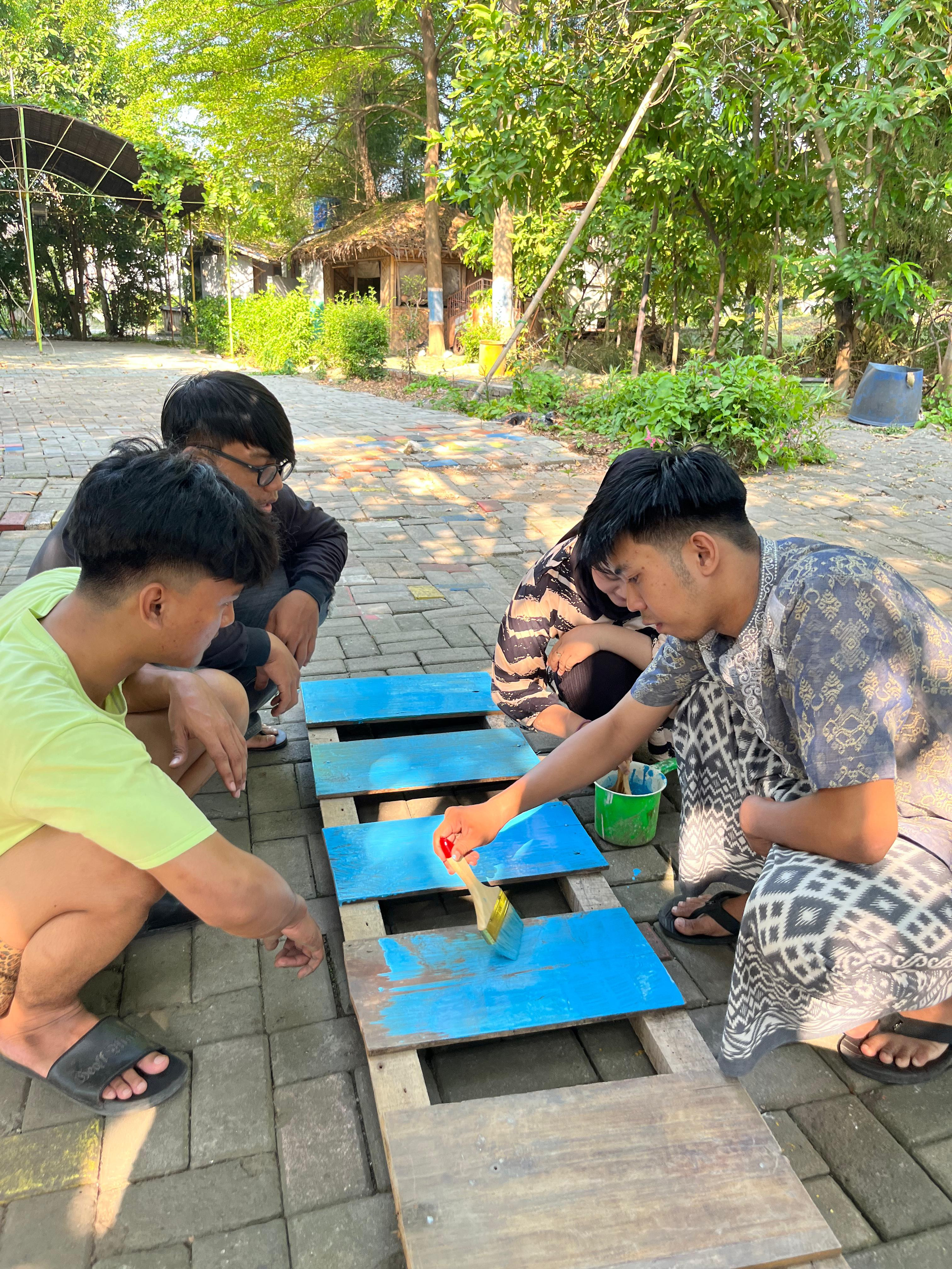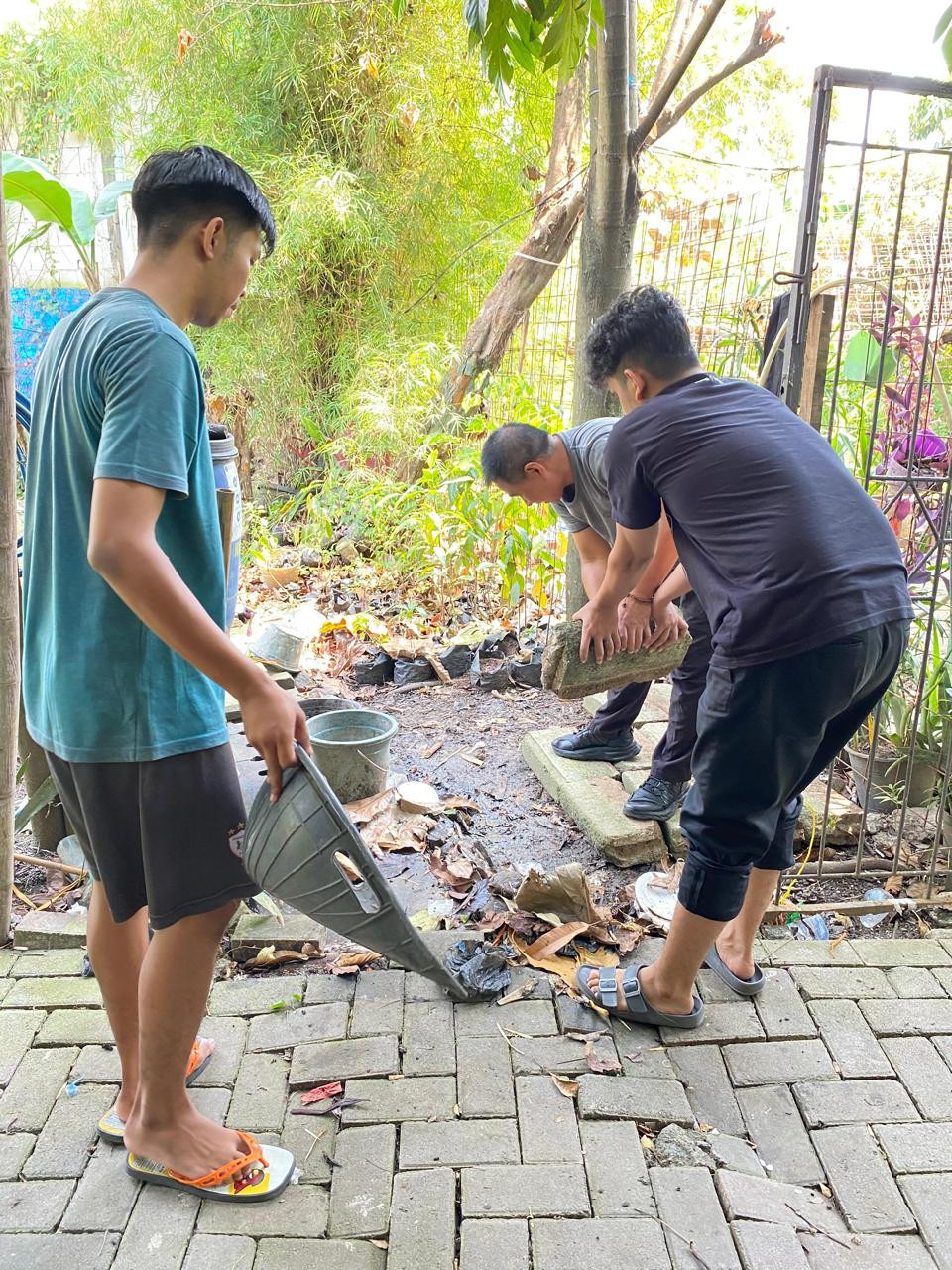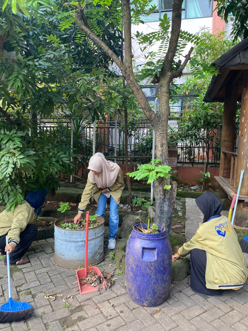 Kerja bakti bersama membersihkan posko tempat tinggal