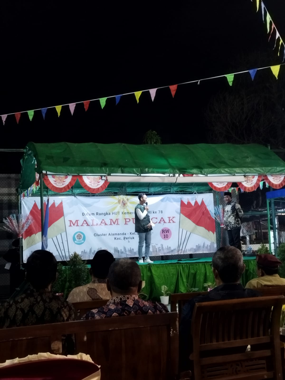 kegiatan malam puncak 17 Agustus di RW 10 yang melibatkan tim kelompok mahasiswa KKN:
