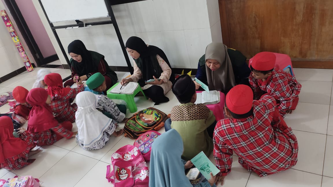 Program kerja dilaksanakan setiap hari senin-jum'at, pada pukul 15:30-17:30 yang dimulai dari tanggal 14 agustus 2023. Seperti halnya dengan program kerja lainnya untuk pembagian tugasnya kami selalu bergantian tiap minggunya. Kegiatan ini merupakan program kerja kami yang rutinitas. Dalam program kerja ini kami mengajar ngaji Iqro, doa harian, hafalan surat, mengenal huruf hijaiyah dan angka hijaiyah. Ada pembagian 5 kelas yaitu, kelas TK/Paud, kelas 1-2, kelas 3, kelas 4-5, dan kelas 6. Dan kami dibagikan tiap kelompok kelasnya memiliki penanggung jawab masing-masing.